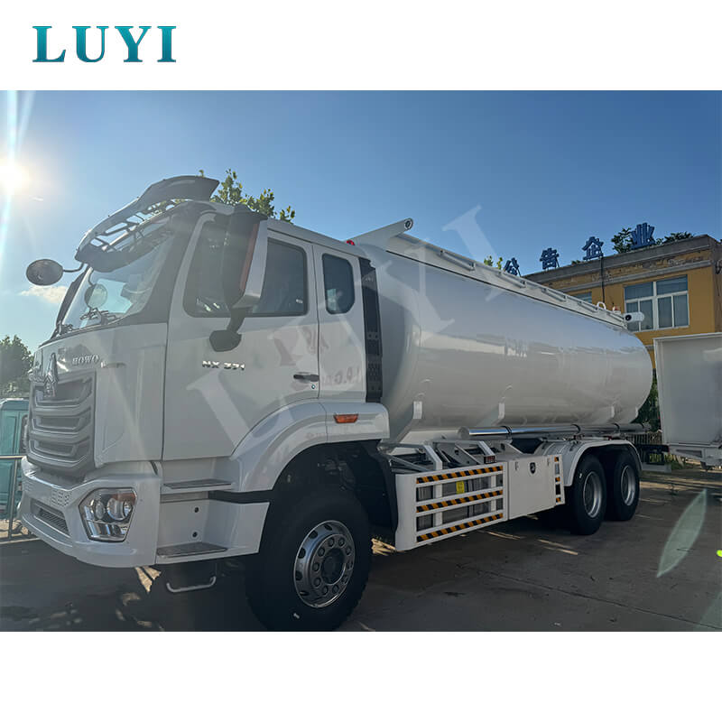 Este semirreboque tanque de óleo é de Shandong, China, e pertence à marca Sinotruk Howo NX. É especialmente projetado para transporte de petróleo. O veículo tem configuração de tração 6×4, com peso total ≥30 toneladas e capacidade de carga de 31-40 toneladas. O volume do tanque é de 25.000 litros, o que pode atender com eficiência às necessidades de transporte de petróleo em grande escala.