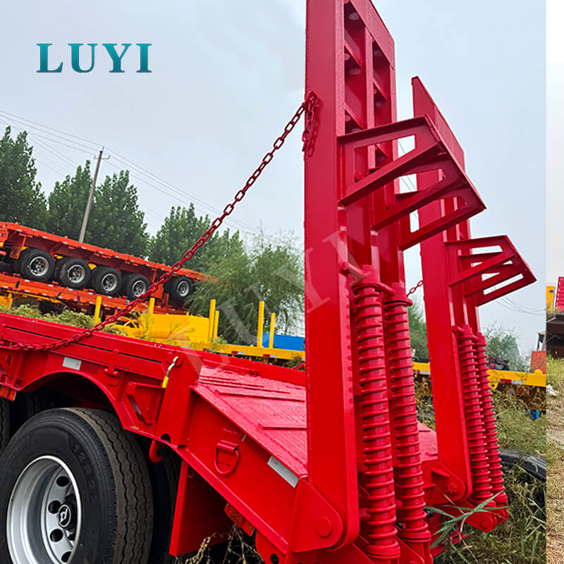 O semirreboque baixo de pescoço de ganso destacável de 60 toneladas e 3 eixos LUYI, produzido em Shandong, China, é um reboque de carga profissional. Seu corpo é fabricado em aço de alta resistência, com dimensões de 1700030001500mm. A estrutura é robusta e o espaço é suficiente, permitindo o carregamento estável de cargas pesadas e adaptando-se às diversas operações de tração de caminhões.