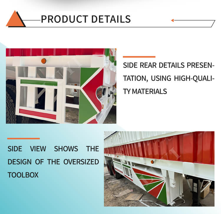 O produto tem dimensões de 12500×2500×1600 mm, equipado com 3 eixos (marcas ZY, Fuhua, BPW opcionais) e opções duplas de suspensão mecânica/a ar para garantir uma condução suave. Ele é combinado com pernas de suporte padrão JOST de 28 toneladas e pneus com especificações 12R22.5/12.00R20/11R22.5, aumentando ainda mais a segurança de carga e descarga e a adaptabilidade às condições da estrada. Além disso, as molas de lâmina de 90×13×10 mm melhoram a estabilidade do suporte de carga e a cor pode ser personalizada conforme necessário, fornecendo uma solução personalizada confiável e flexível para logística e transporte.