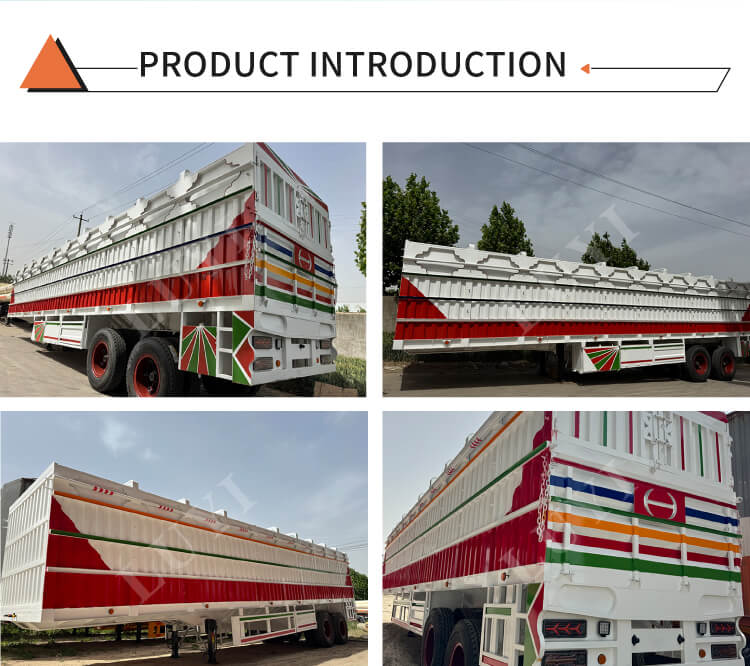 Luyi 2-Axle 100-Ton Stake Semi-Trailer, um novo reboque de carga originário da província de Shandong, China, foi especialmente projetado para transporte eficiente de cargas pesadas. Seu corpo é fabricado em aço de alta resistência, apresentando excelente resistência à pressão e durabilidade. Com carga útil máxima efetiva de 60 toneladas, pode transportar com flexibilidade mercadorias a granel e contêineres, adaptando-se a diversos cenários de frete.