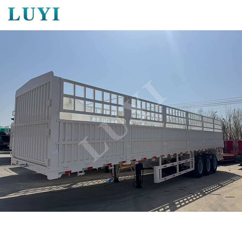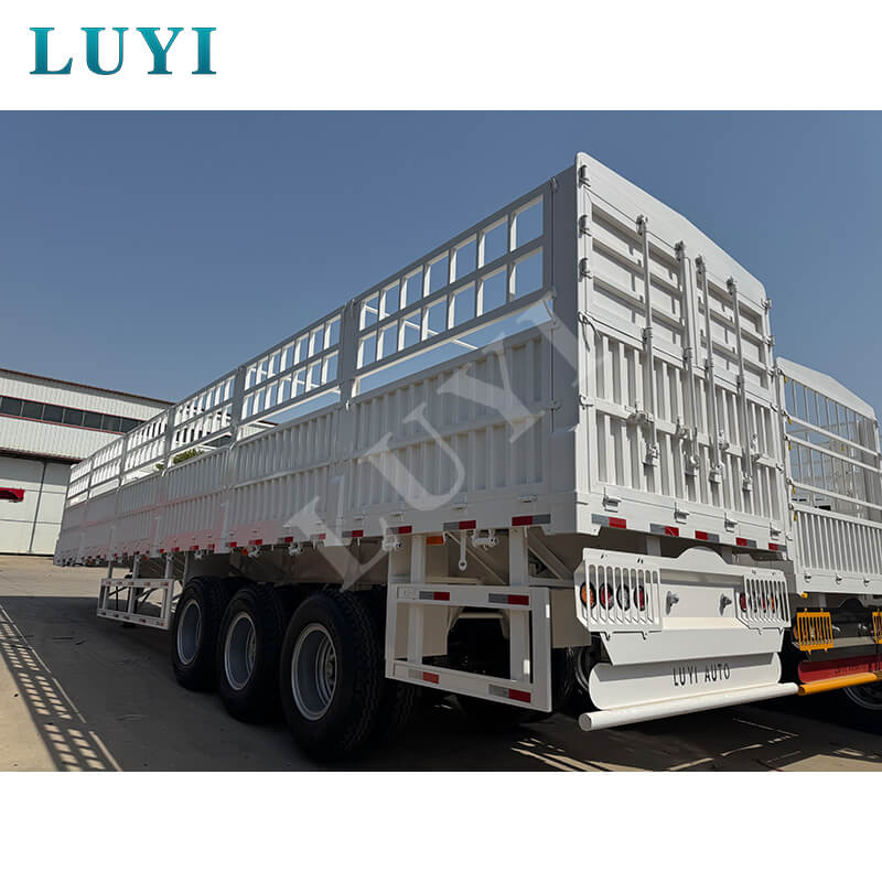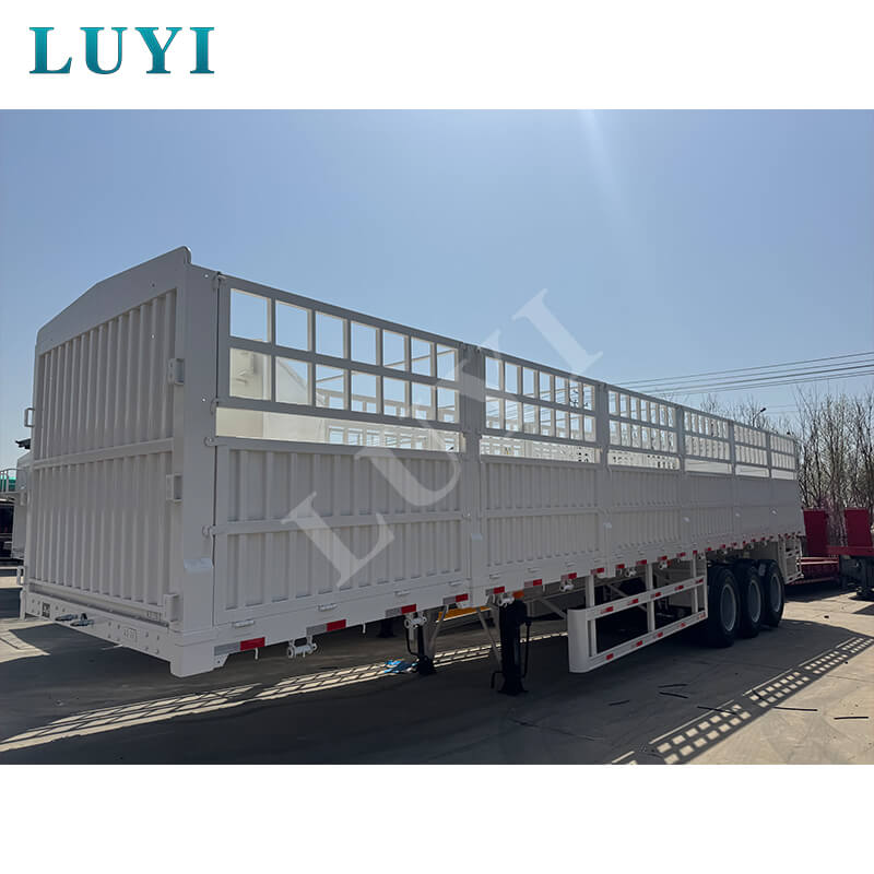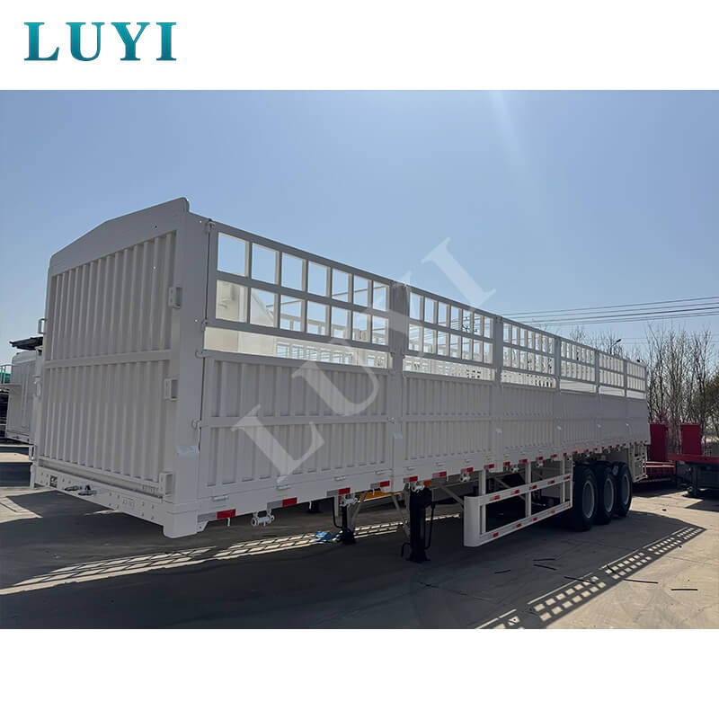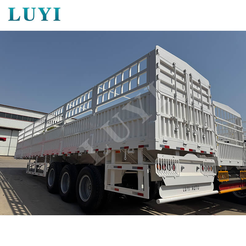 Feito principalmente de aço de alta qualidade, o trailer possui uma estrutura sólida e durável. Sua carga efetiva máxima chega a 100 toneladas, e a capacidade de carga normal varia de 80 a 100 toneladas. Com dimensões de 1250025002000 mm, está equipado com 3 eixos das marcas FUWA ou BPW, podendo escolher com flexibilidade a suspensão mecânica ou pneumática para se adaptar às diferentes condições da estrada. O pino mestre oferece opções JOST de 2 polegadas (50 mm) ou 3,5 polegadas (90 mm), as pernas de suporte são de especificação padrão de 28 toneladas e os pneus podem ser dos modelos 12R22.5, 12.00R20 ou 11R22.5. Possui funções abrangentes, capaz de transportar animais, mercadorias em geral e contêineres, e sua cor também pode ser customizada conforme a necessidade, proporcionando uma solução confiável para diversos cenários de frete.