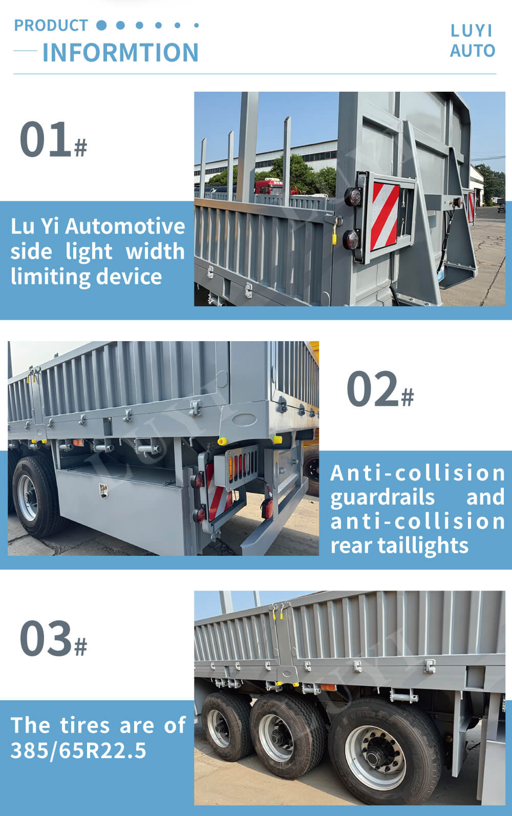 Semirreboque LUYI de 3 eixos com paredes laterais de coluna