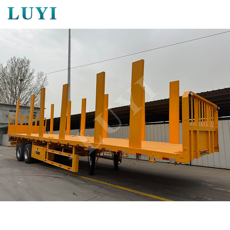 O reboque de coluna plana de 2 eixos e 40 toneladas da LUYI é feito sob medida para o transporte de madeira com amplas opções de personalização. Ajuste a altura do aparador (30-80 cm disponíveis) para caber em troncos, madeira serrada ou outros produtos de madeira e escolha entre placas de aço xadrez ou decks com revestimento antiderrapante para maior aderência.