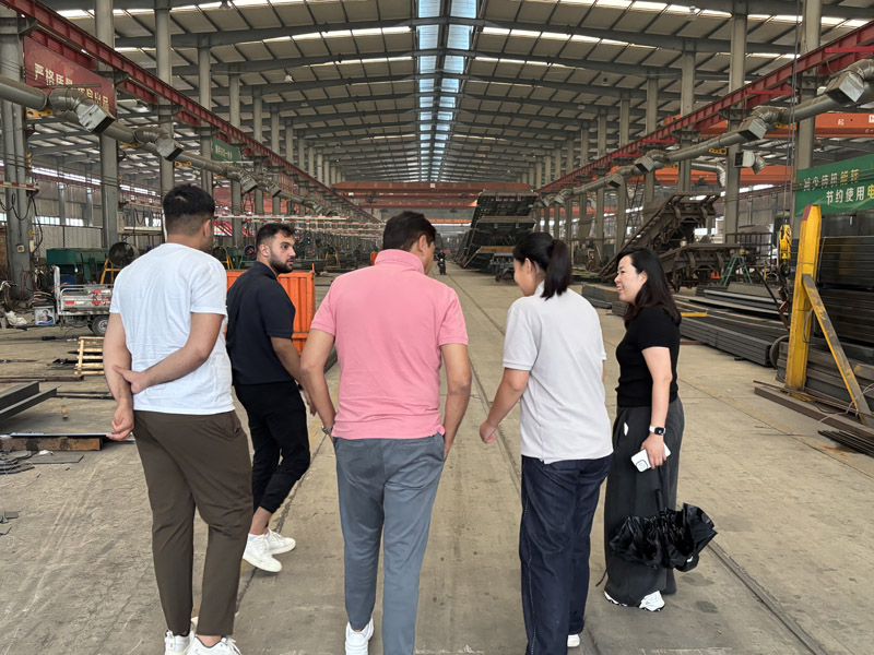 Sob a orientação da equipe da Fábrica Luyi, os comerciantes sul-africanos entraram pela primeira vez na oficina de processamento de matéria-prima para semirreboques planos. Na oficina, o aço de alta resistência é gradualmente transformado nos componentes principais dos semirreboques planos por meio de corte preciso, retificação e outros processos. A equipe apresentou detalhadamente aos comerciantes sul-africanos que os semirreboques planos produzidos pela Luyi Factory controlam rigorosamente a seleção das matérias-primas e todos adotam aço de alta resistência que atende aos padrões internacionais. Este tipo de aço pode não só melhorar o desempenho geral de suporte de carga dosemi-reboques planos, mas também prolonga efetivamente a vida útil dos semirreboques planos, o que é totalmente adequado aos requisitos de durabilidade do mercado sul-africano para equipamentos de carga. Os comerciantes sul-africanos ouviram atentamente a explicação e de vez em quando pararam para observar os detalhes do processamento da matéria-prima e expressaram o seu reconhecimento pela atitude rigorosa da Luyi Factory no controlo de matéria-prima para semi-reboques planos.