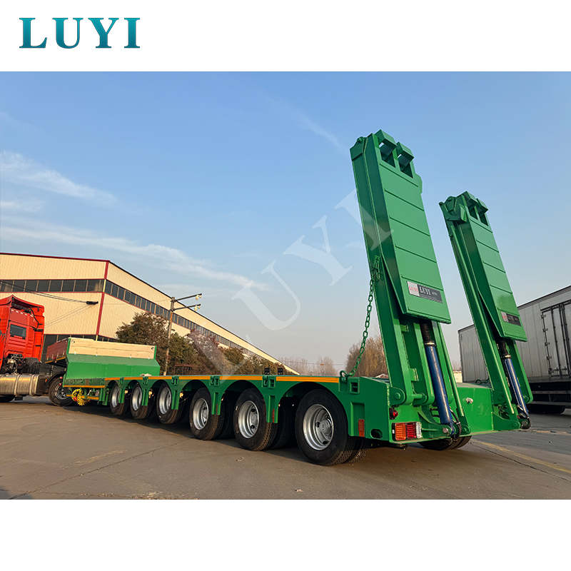 Os semirreboques lowboy hidráulicos de pescoço de ganso de 6 eixos Luyi adotam aço de alta resistência para construir a estrutura principal, com um tamanho de corpo de 17.000 x 3.000 x 1.500 mm e uma carga útil máxima efetiva de até 120 toneladas, que pode facilmente transportar escavadeiras de 80 toneladas, carregadeiras e outras máquinas pesadas comumente usadas no Sudão. A parte pescoço de ganso dos semirreboques rebaixados hidráulicos pescoço de ganso de 6 eixos adota um design não destacável, que não apenas aumenta a estabilidade da estrutura geral, mas também reduz o centro de gravidade do veículo. Cooperando com a distribuição equilibrada de 6 eixos, os semirreboques rebaixados hidráulicos pescoço de ganso de 6 eixos podem manter uma condução estável mesmo em condições de estrada complexas. Visando as características das estradas do Sudão com muitos desertos e cascalhos, os semirreboques rebaixados hidráulicos pescoço de ganso de 6 eixos são equipados com sistemas de suspensão de modo duplo de molas pneumáticas e de lâmina, que podem ser alternados de forma flexível de acordo com as condições da estrada para reduzir efetivamente o impacto de solavancos nas mercadorias.
