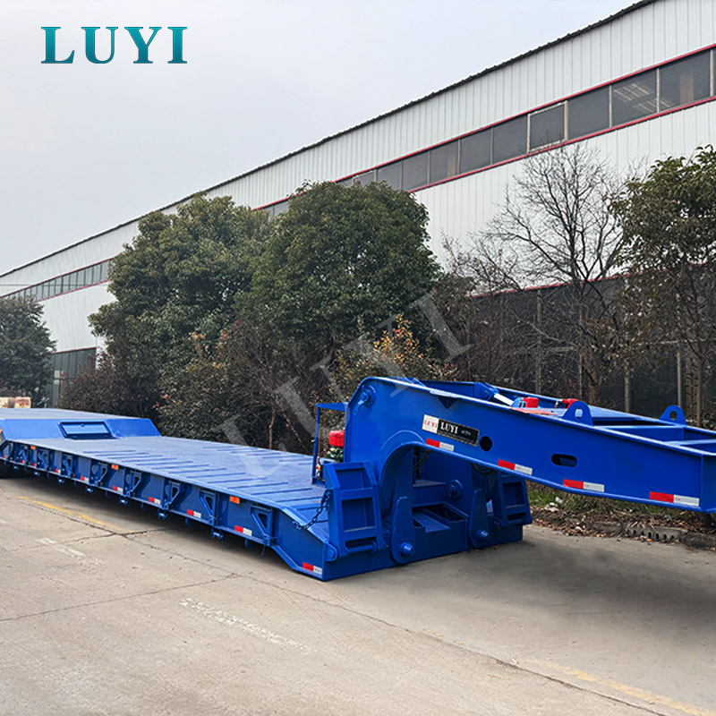 O semirreboque baixo pescoço de ganso de 4 eixos LUYI, originário de Shandong, China, é um semirreboque de alta qualidade especialmente projetado para transporte de cargas pesadas. Construído com aço premium, tem tara de apenas 6.350KG, capacidade de carga nominal de 50.000KG e carga útil máxima variando de 30T a 200T, proporcionando desempenho de suporte de carga excepcional.