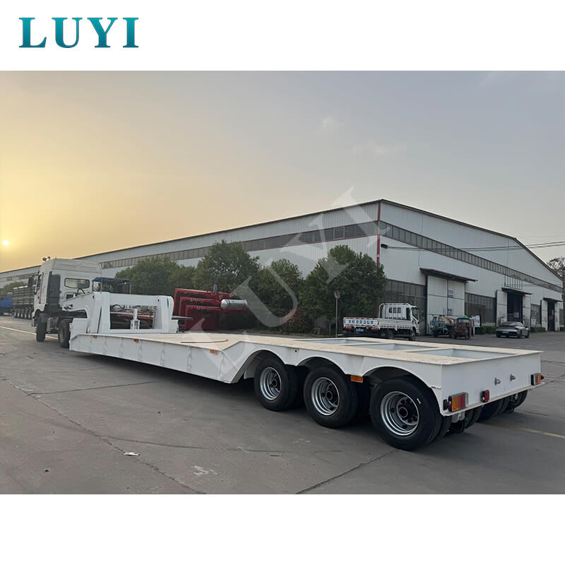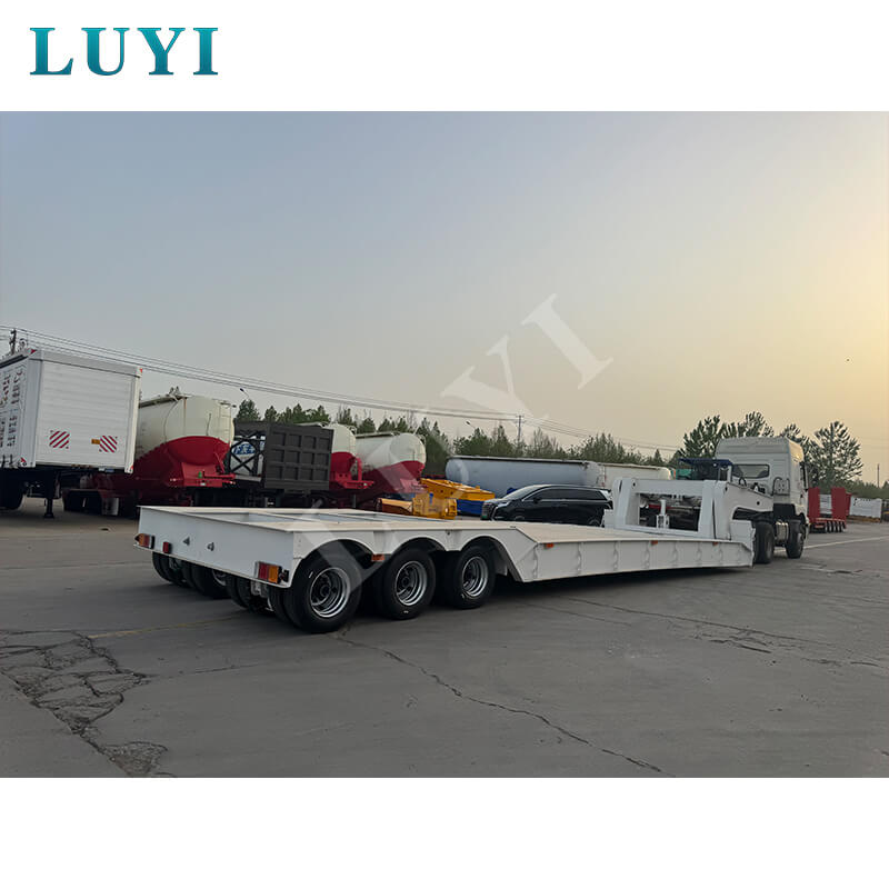 Fabricado em Shandong, China, o semirreboque baixo tipo pescoço de ganso dobrável LUYI de 3 linhas e 6 eixos é um semirreboque profissional especialmente projetado para transporte de equipamentos pesados.