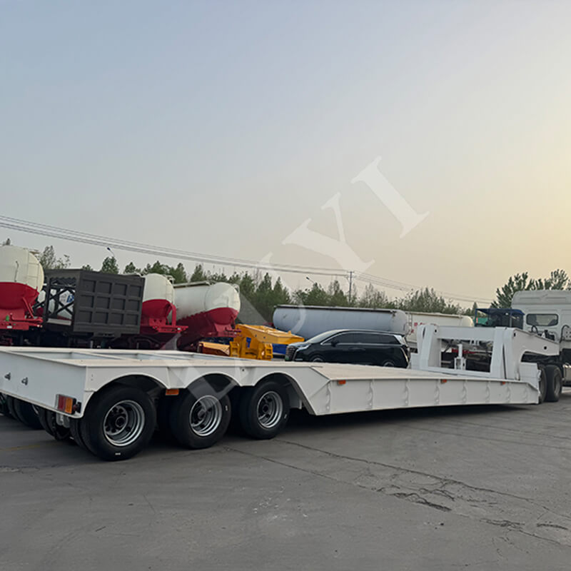 O trailer oferece duas opções de materiais: aço carbono e alumínio, equilibrando resistência estrutural e necessidades de leveza. Com carga útil máxima de 80 toneladas, ele pode lidar com eficiência com o transporte de equipamentos pesados. Adota um design de 6 eixos, equipado com eixos de marcas conhecidas (Fuwa ou BPW) e combinado com pneus em múltiplas especificações (12R22.5, 12.00R20, 11R22.5). Sistemas de suspensão mecânica ou pneumática são opcionais para garantir estabilidade de condução e segurança da carga.