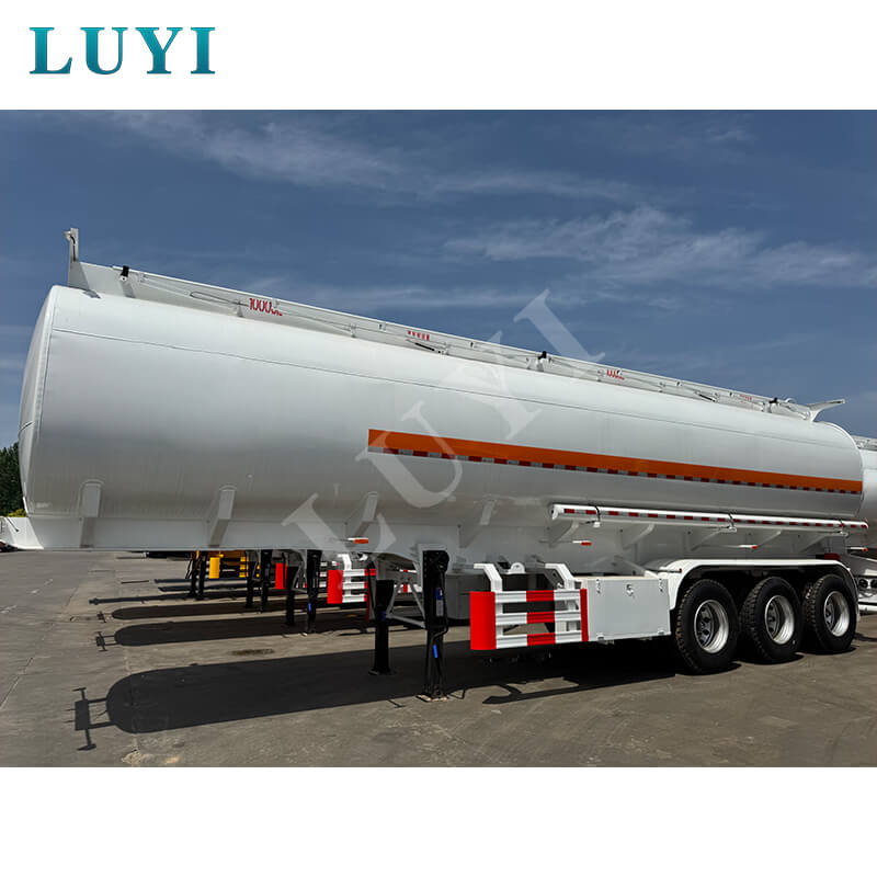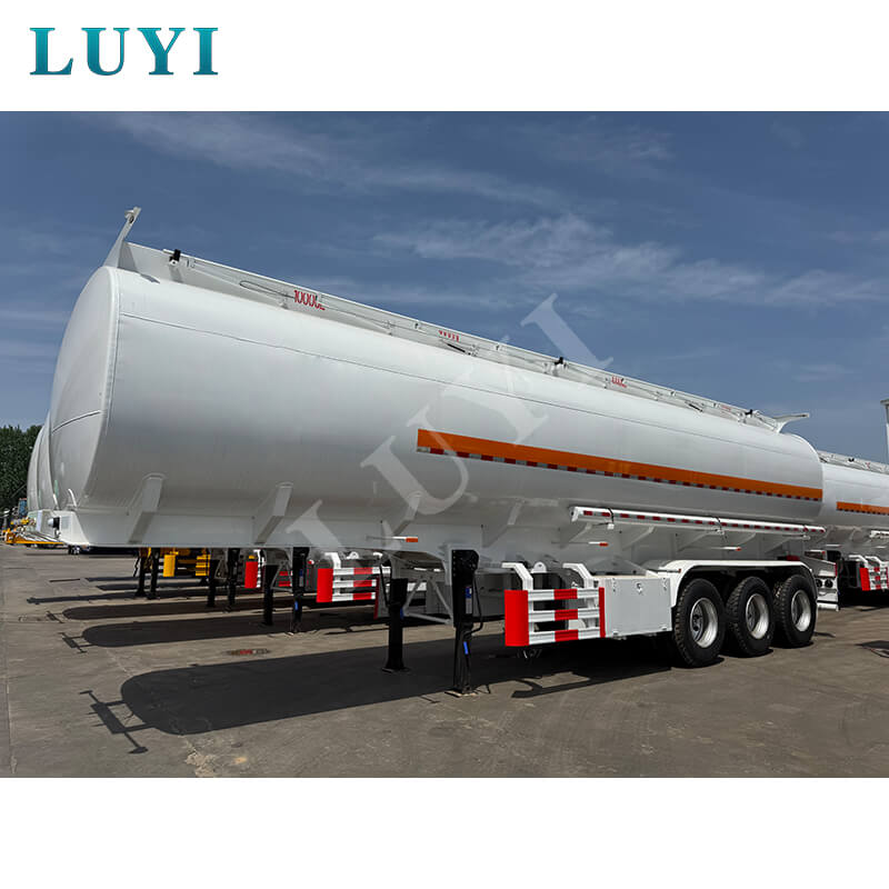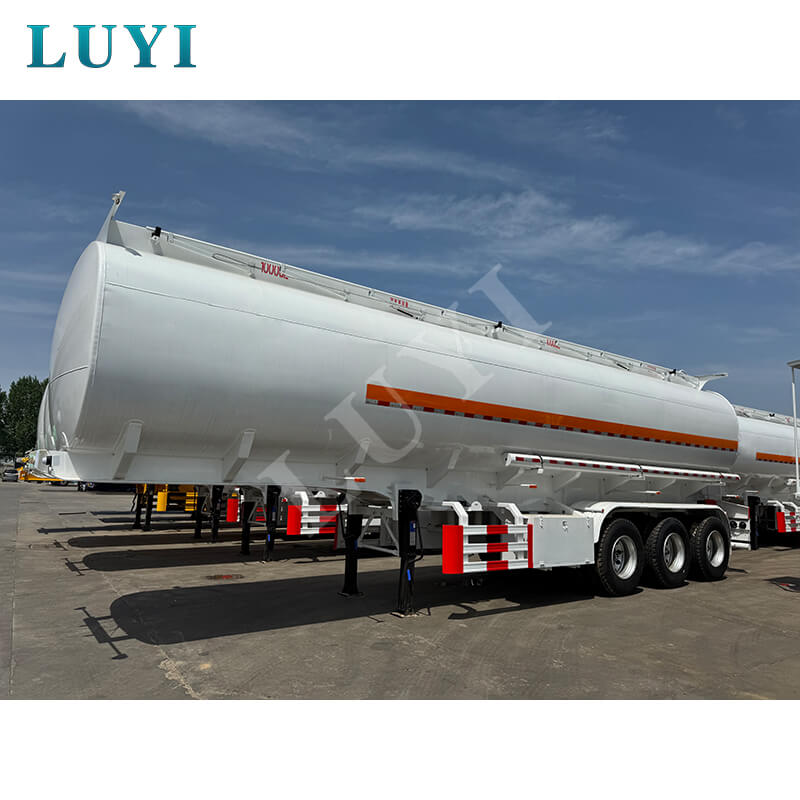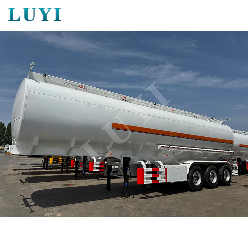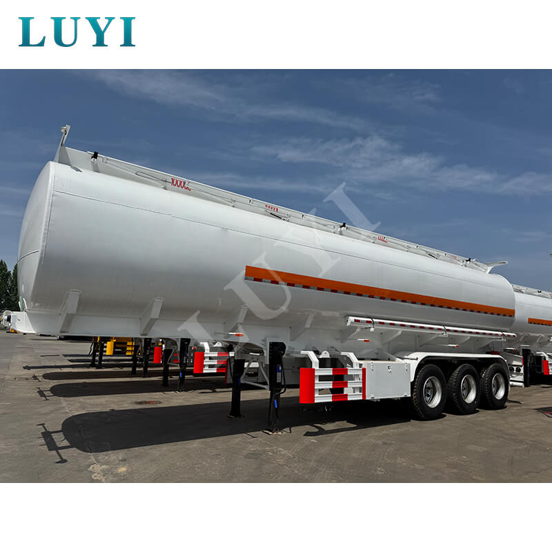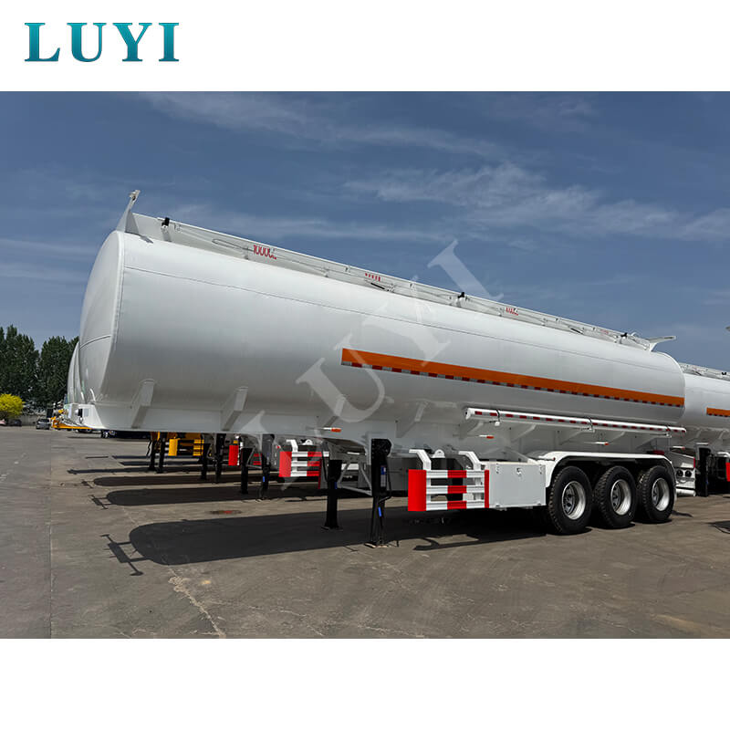 O semirreboque tanque de óleo LUYI de 3 eixos em aço carbono 55.000L, vindo de Shandong, China, é uma solução de alto desempenho para transporte de petróleo. Com dimensões de 10800×2550×3700MM e uma carga útil máxima superior a 30.000 kg, atende com eficiência às necessidades de transporte pesado.