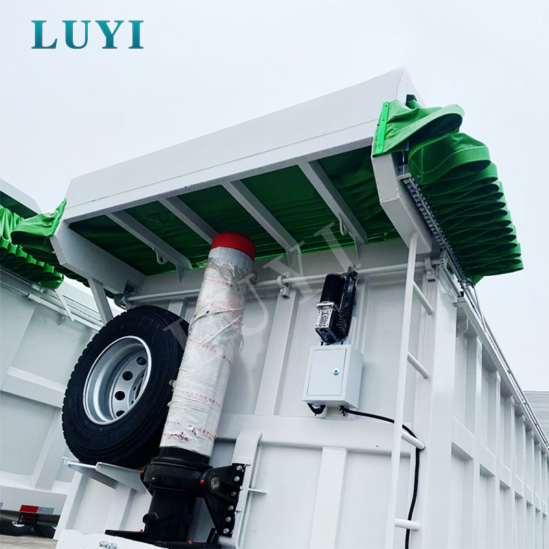 O semirreboque basculante traseiro basculante branco de 3 eixos da marca LUYI, proveniente de fabricação de alta qualidade em Shandong, China, é um reboque de caminhão eficiente especialmente projetado para transporte de cargas pesadas. O produto é feito de aço de alta resistência, apresentando uma estrutura estável e durável. Possui dimensões de 1300mm × 2500mm × 4000mm e capacidade de carga máxima de 100 toneladas, atendendo facilmente às necessidades de transporte de diversos produtos pesados.